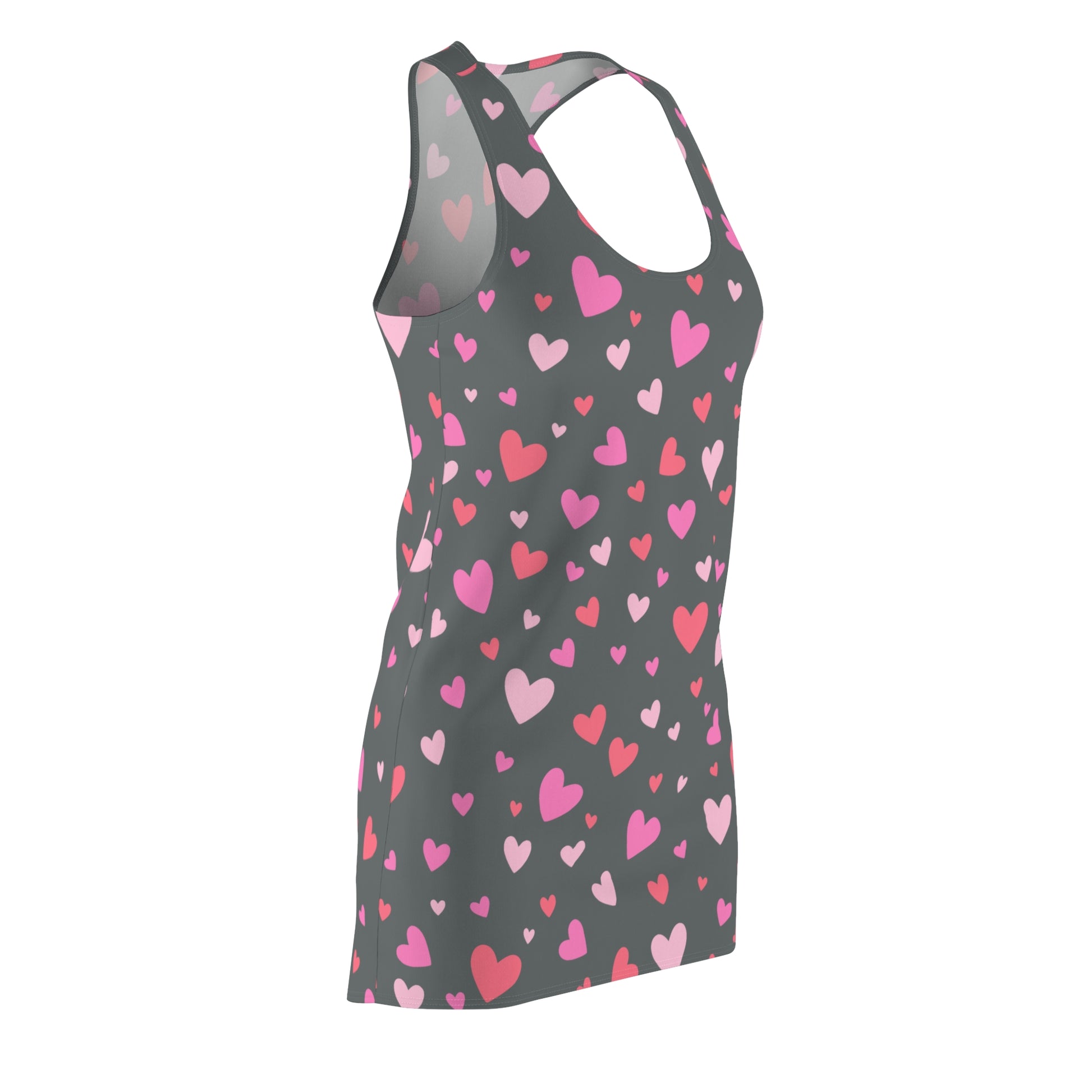 Pink Herz Racerback Kleid – Verspieltes Sommerkleid in Grau