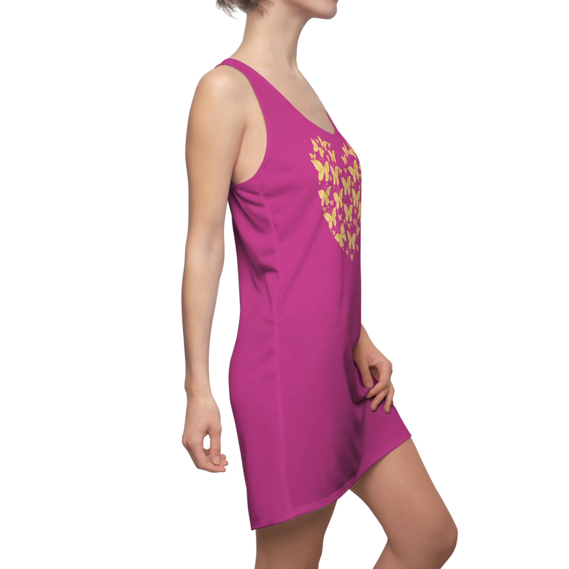 Pink Schmetterlingsherz Racerback Kleid – Gold Sommerkleid