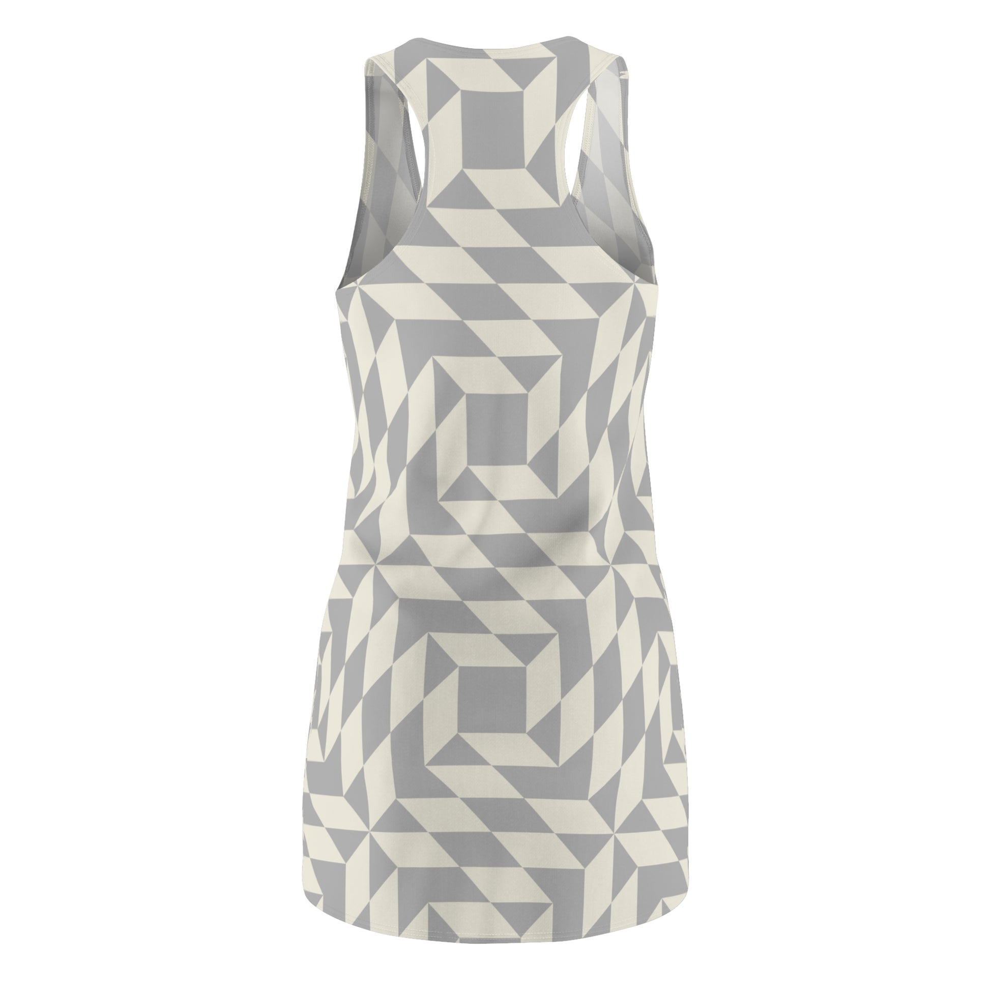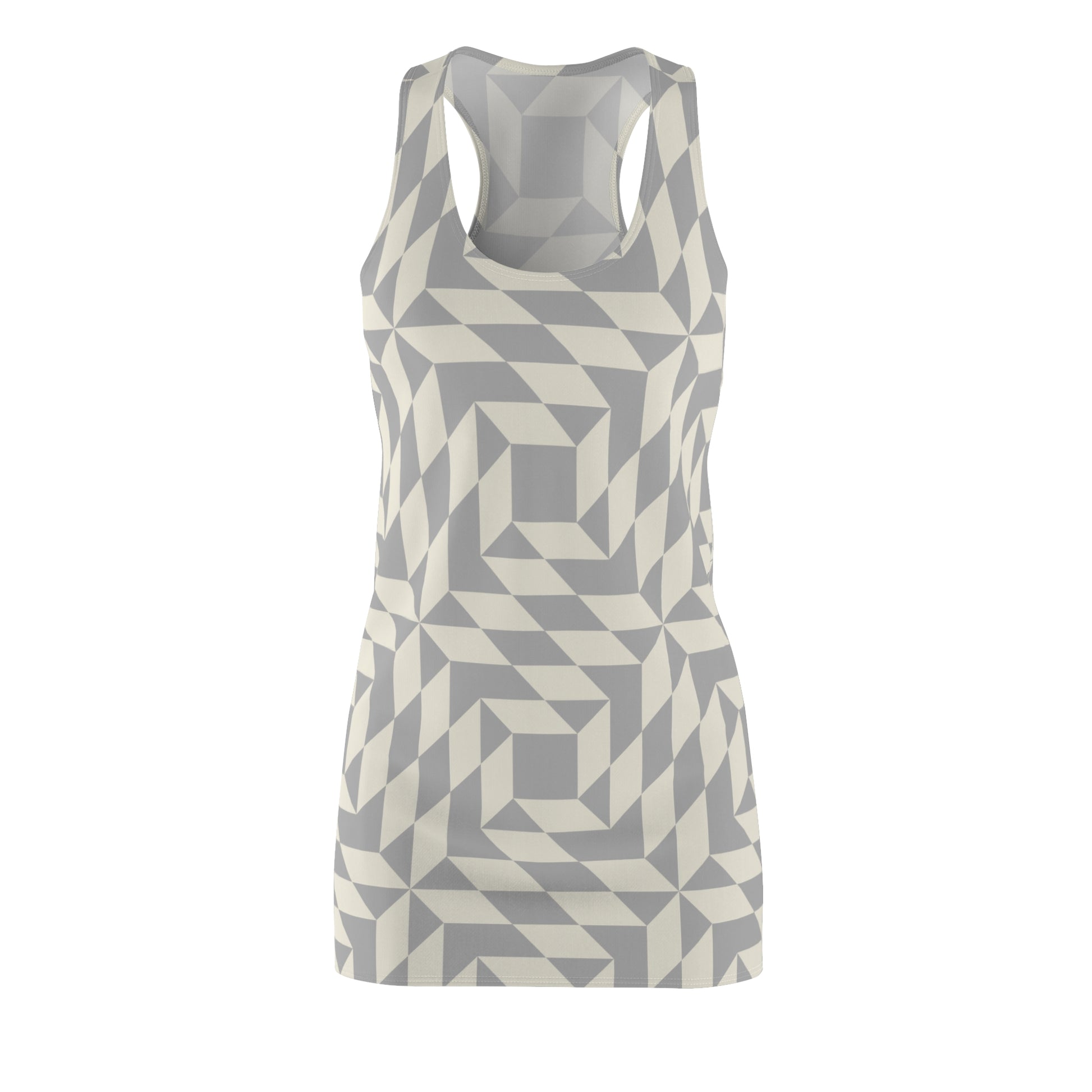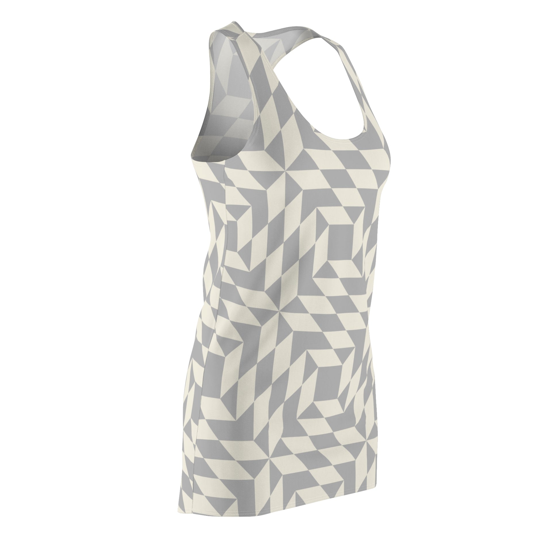 Racerback Kleid Damen – Graues Sommerkleid mit geometrischem Muster