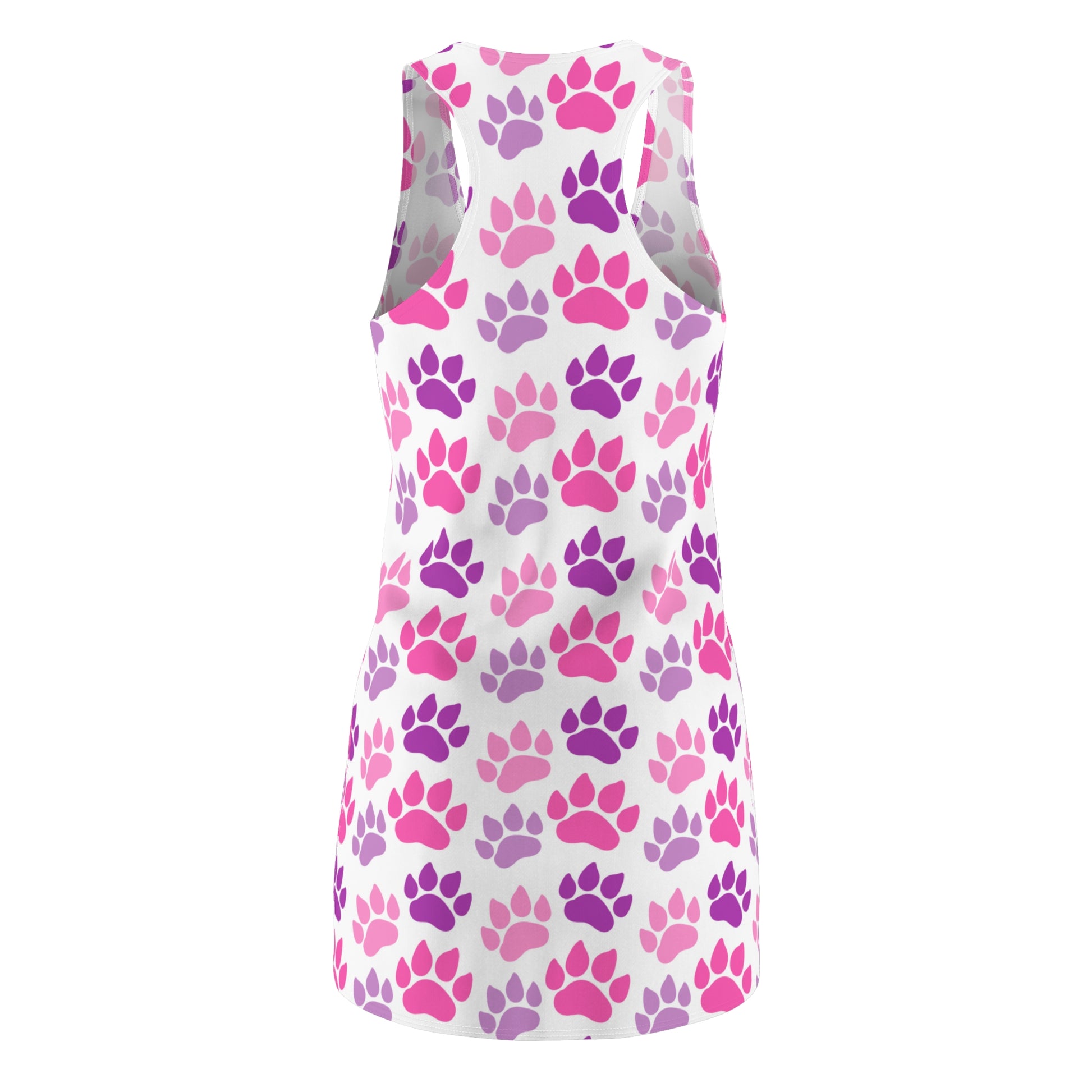 Racerback Kleid Damen – Weißes Sommerkleid mit pinken Pfotenmustern