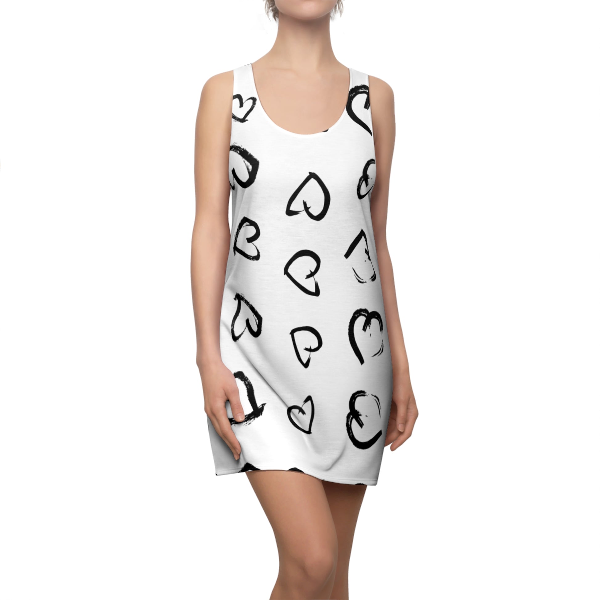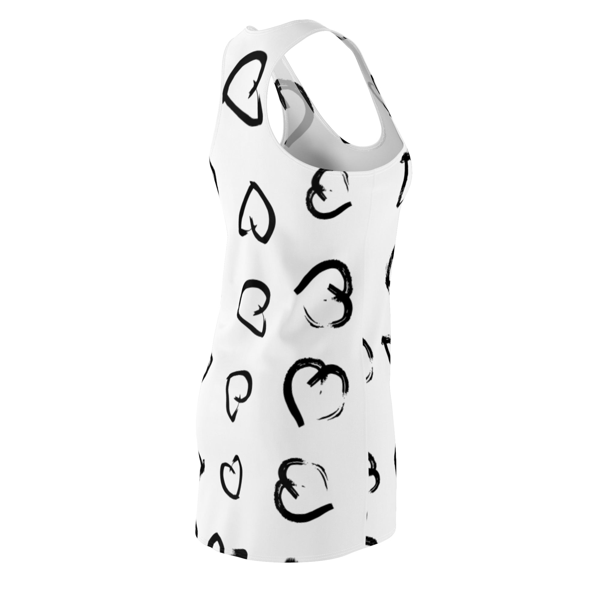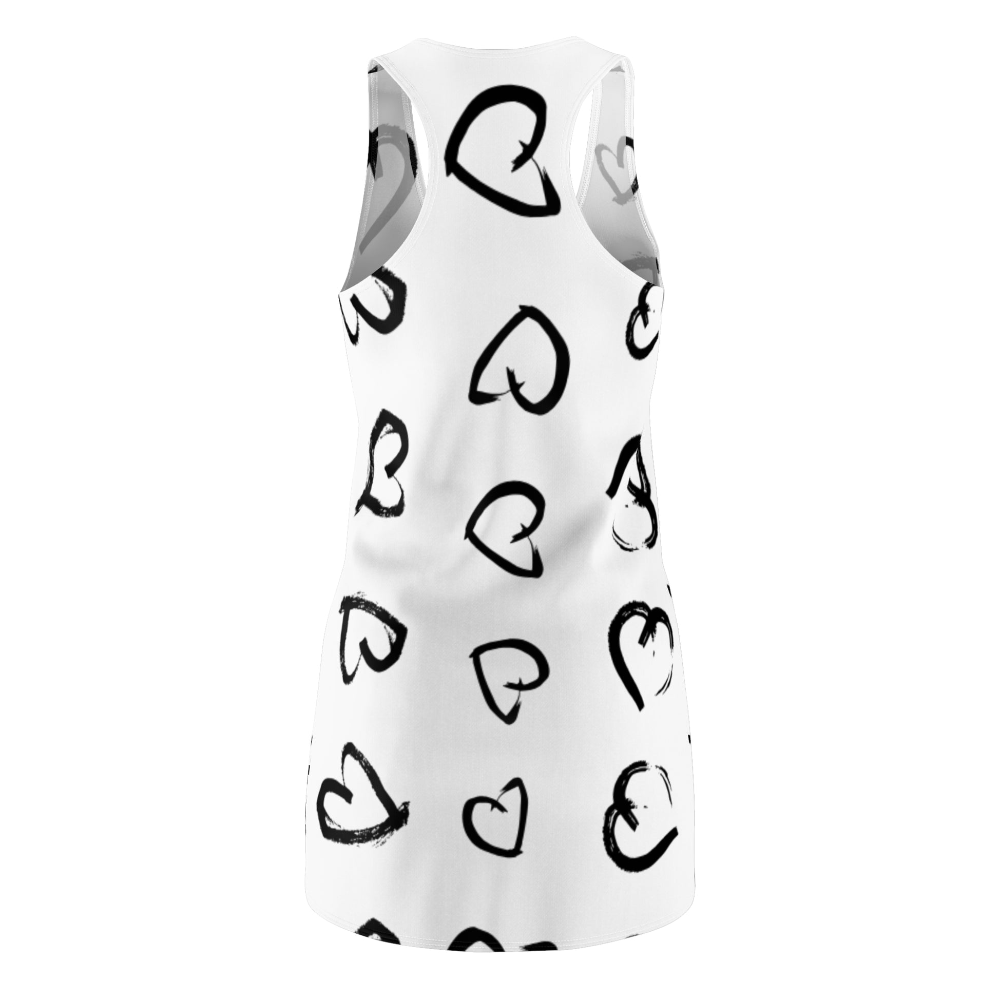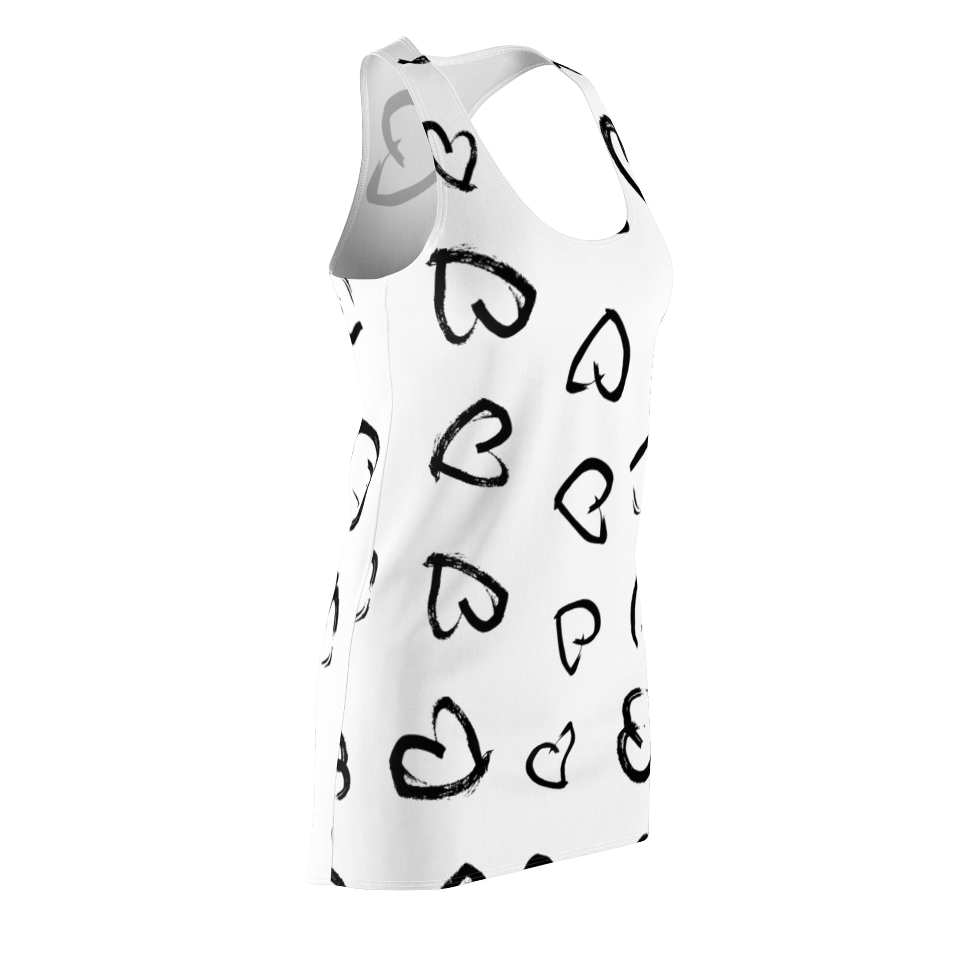 Racerback Kleid mit handgezeichnetem Herzmuster – Lässiges Sommerkleid