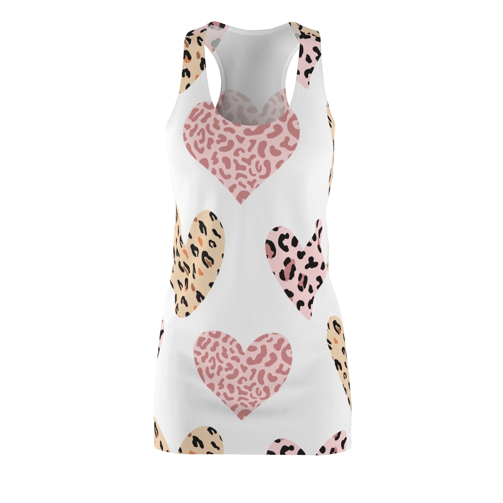 Herz Leopard Racerback Kleid – Weiß Pink Sommerkleid