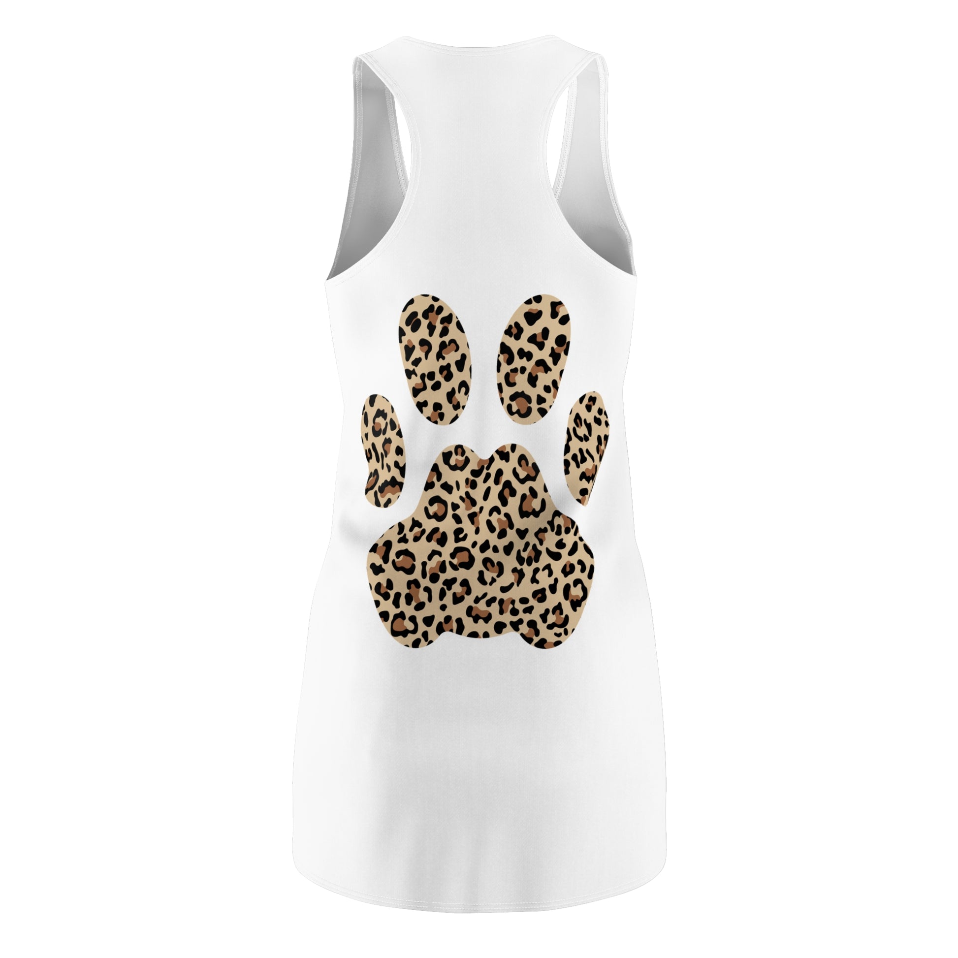 Weißes Damen Racerback Kleid mit Leoparden Pfotenmuster Sommer Design