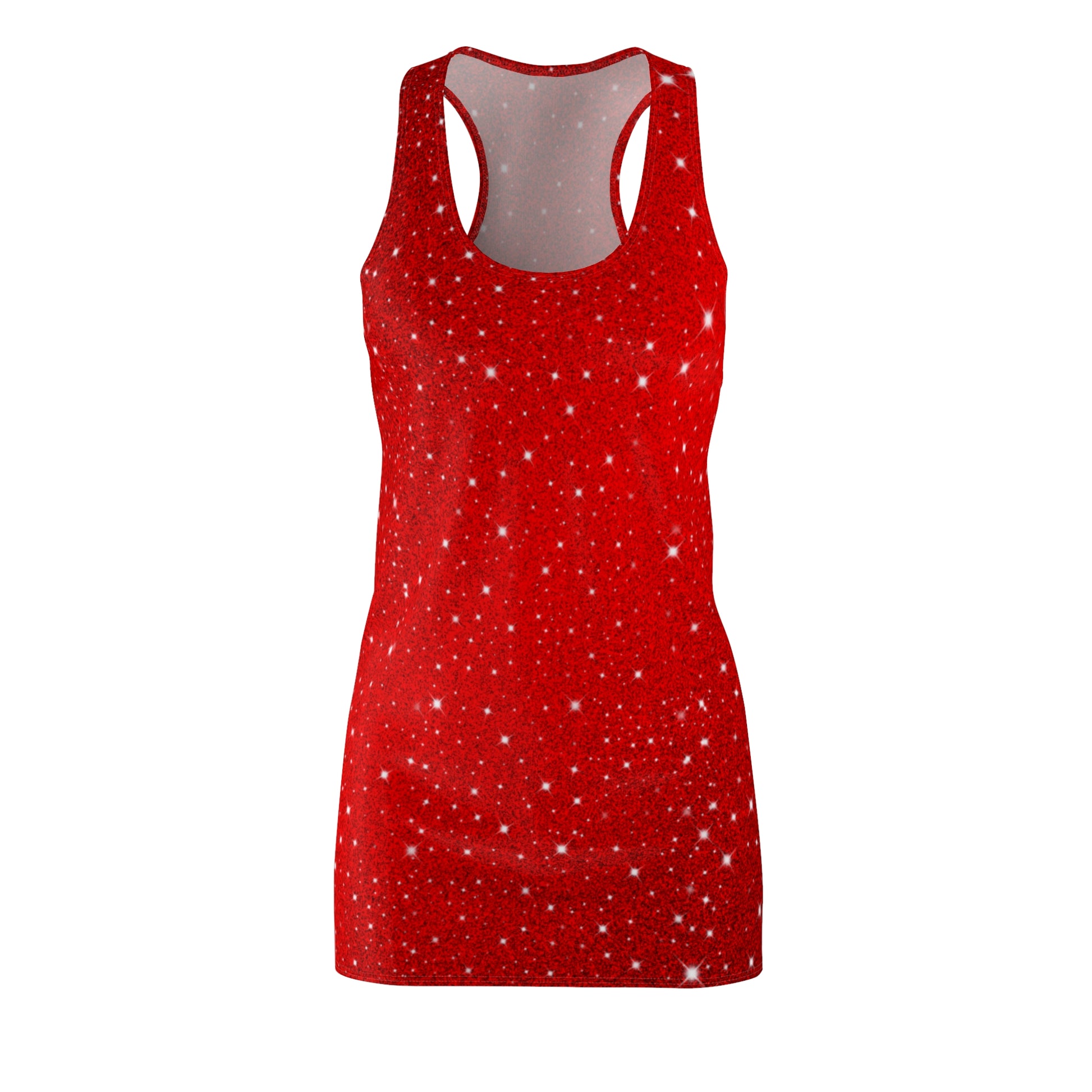 Racerback Kleid Rot mit Glitzer Sterneffekt – Party Look