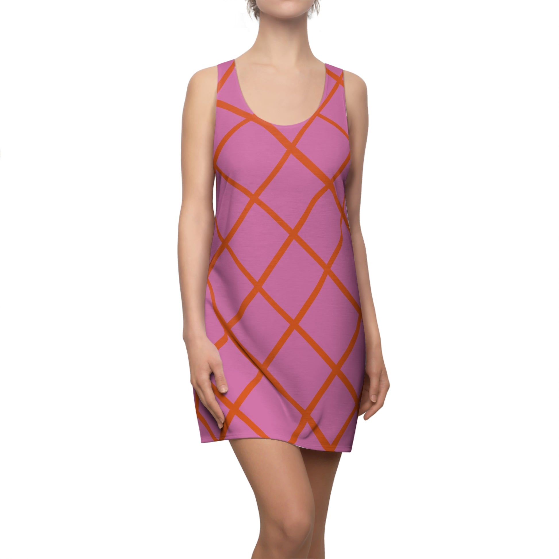 Rosa Orange Karo Racerback Kleid – Elegantes Sommerkleid