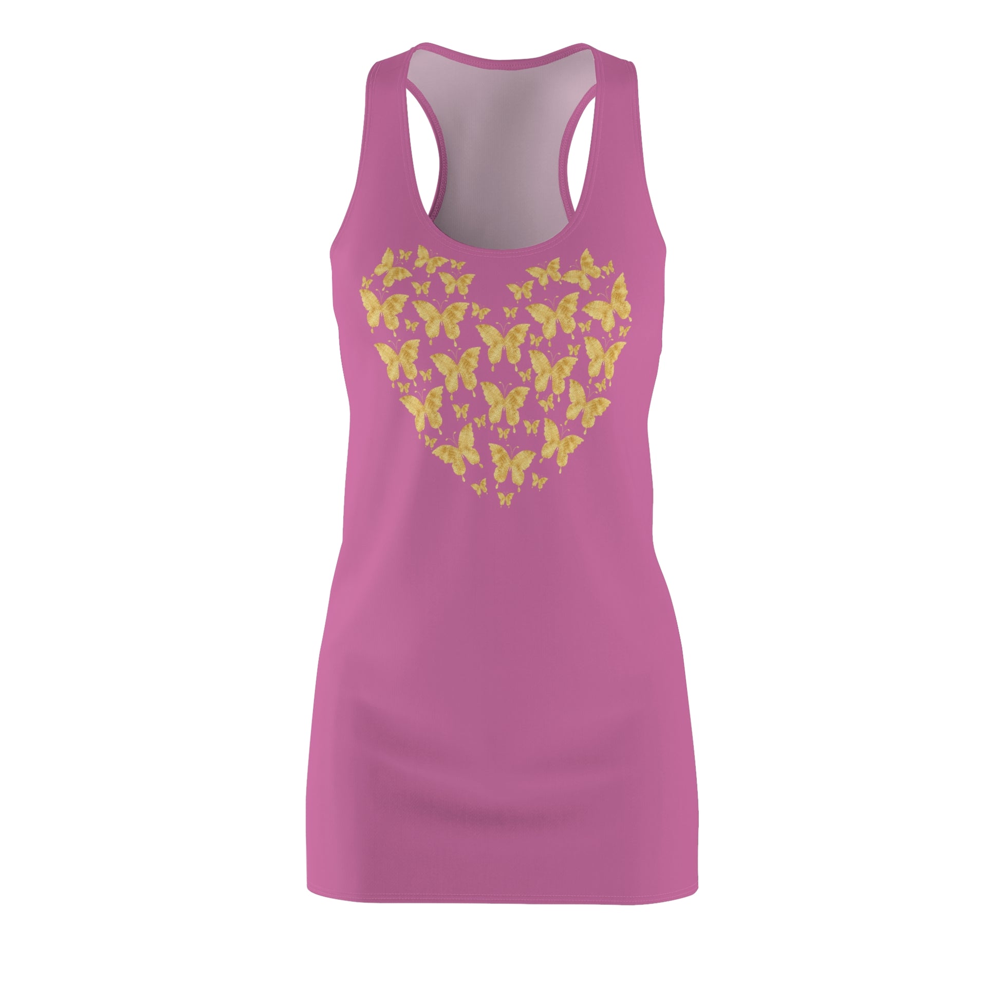 Rosa Schmetterlingsherz Racerback Kleid – Gold Sommerkleid