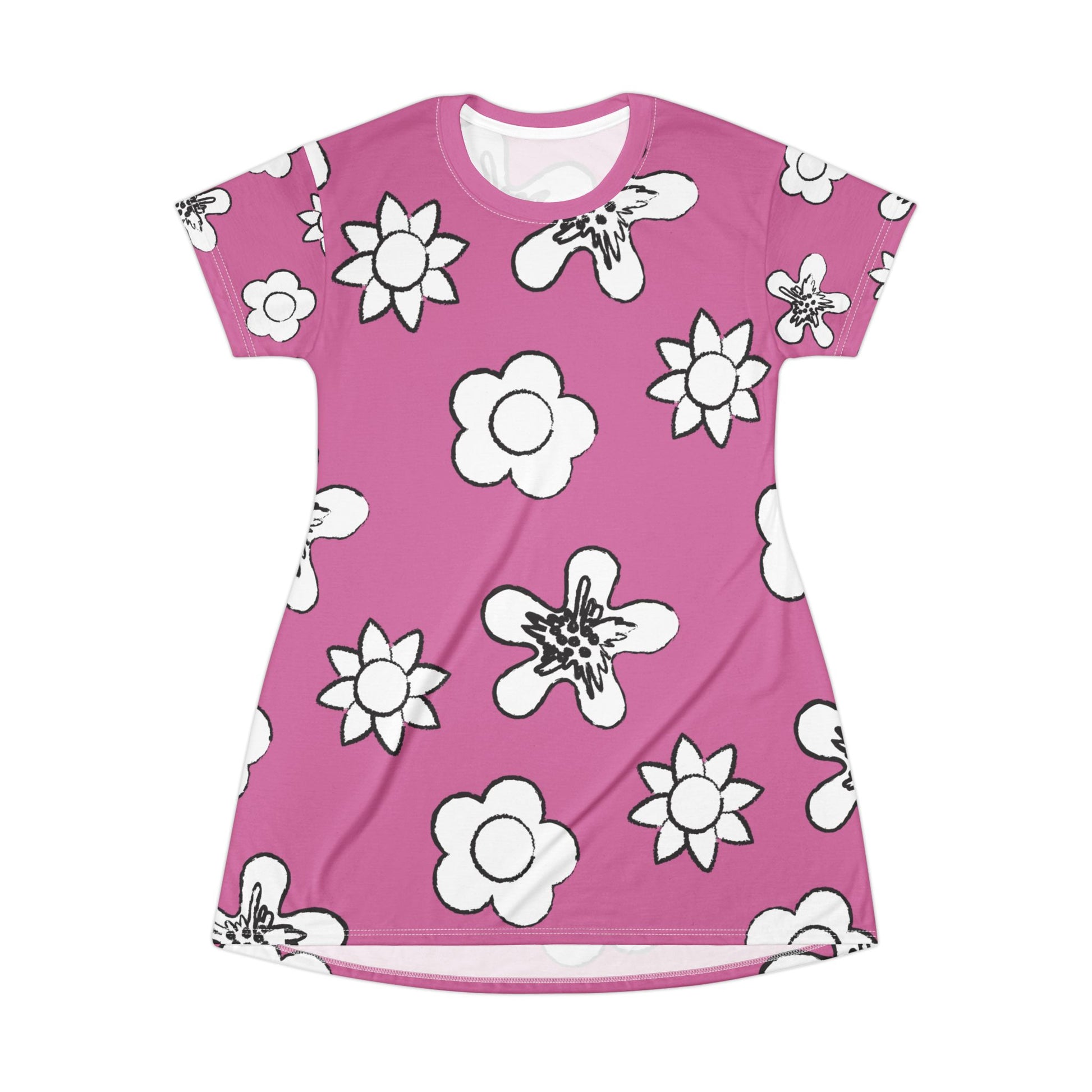 This floral T-shirt dress combines comfort and style in one elegant design. Perfect for summer days, casual outings, or lounging at home. Its relaxed fit and soft feel offer all-day comfort.
