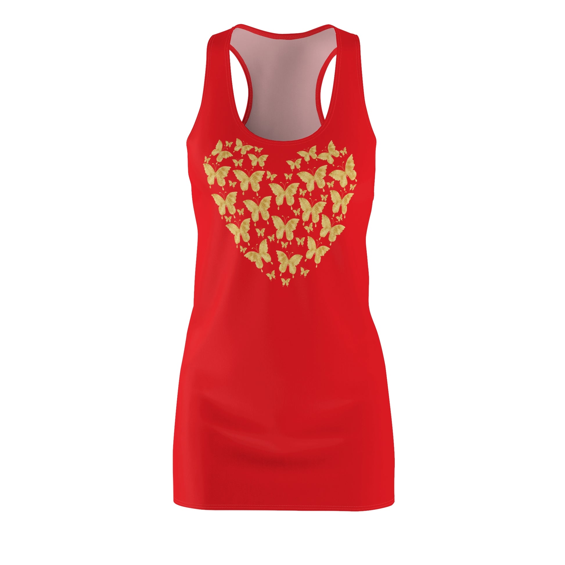Rot Schmetterlingsherz Racerback Kleid – Gold Sommerkleid