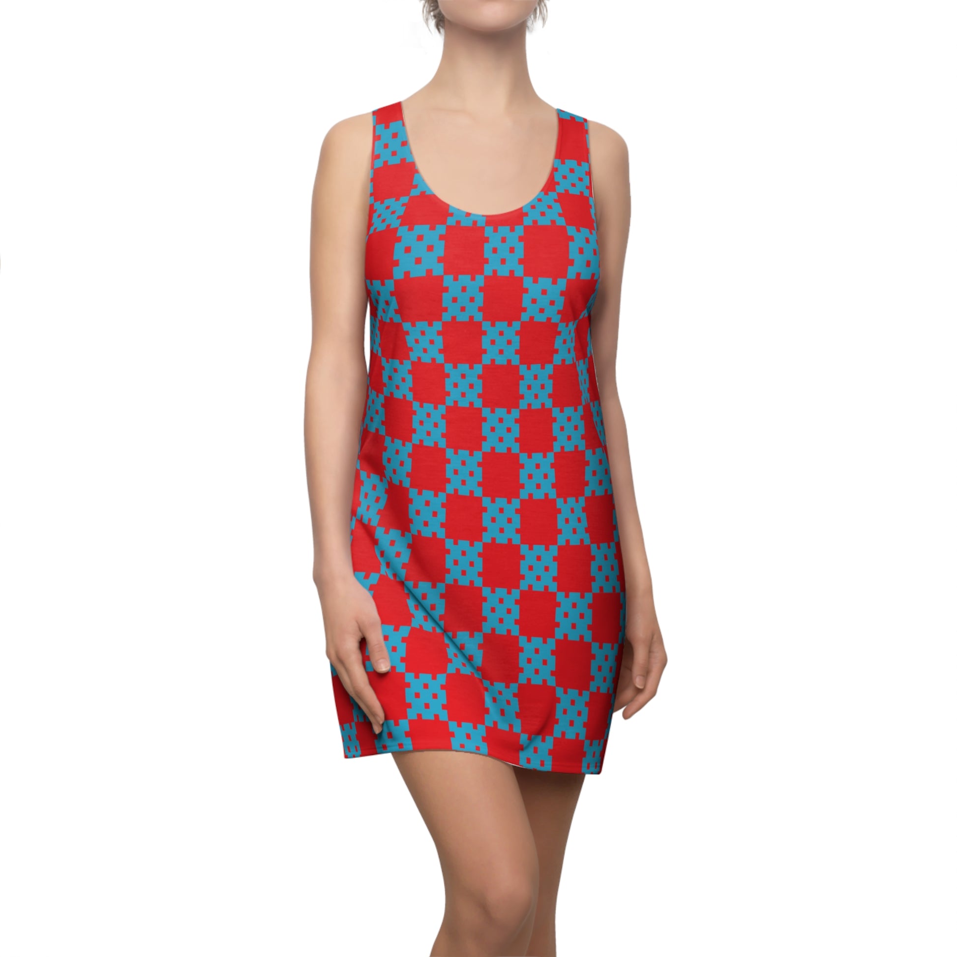 Rot-Türkises Racerback Kleid mit geometrischem Karomuster