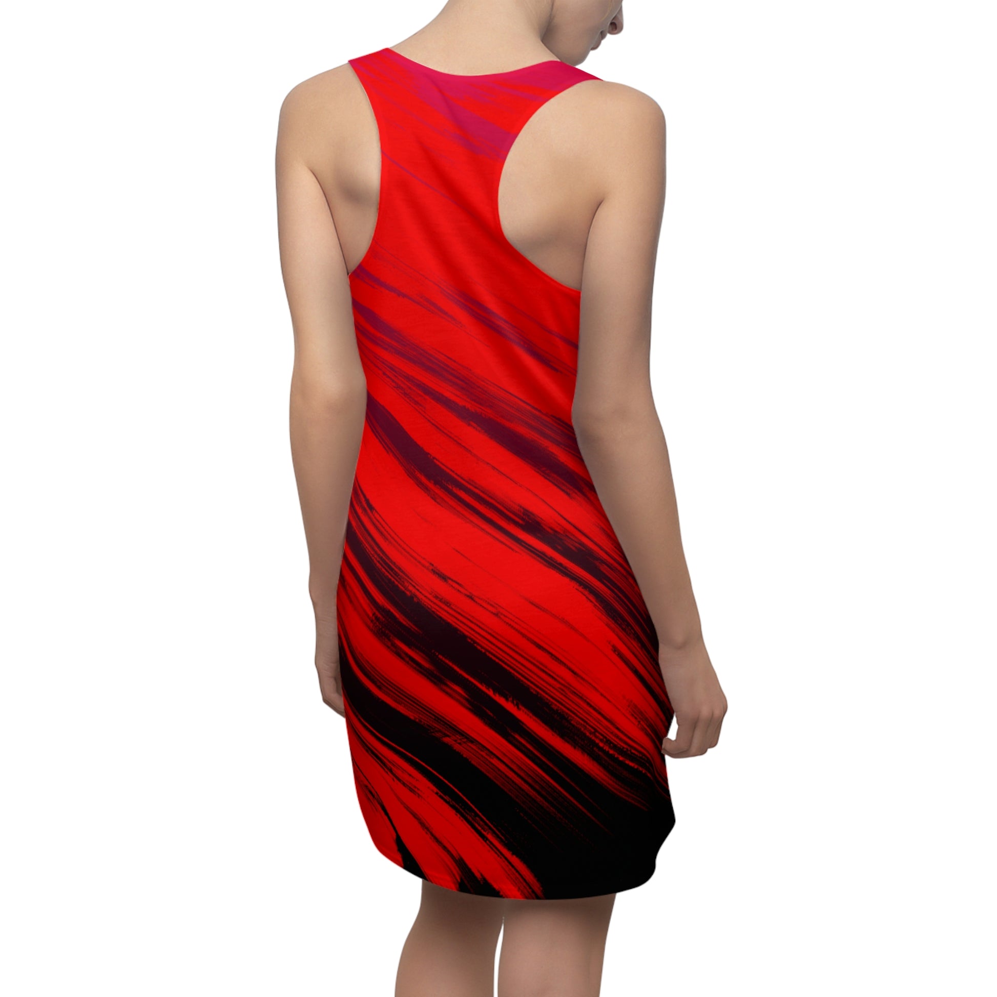 Rotes Racerback Kleid mit schwarzem Abstract Muster