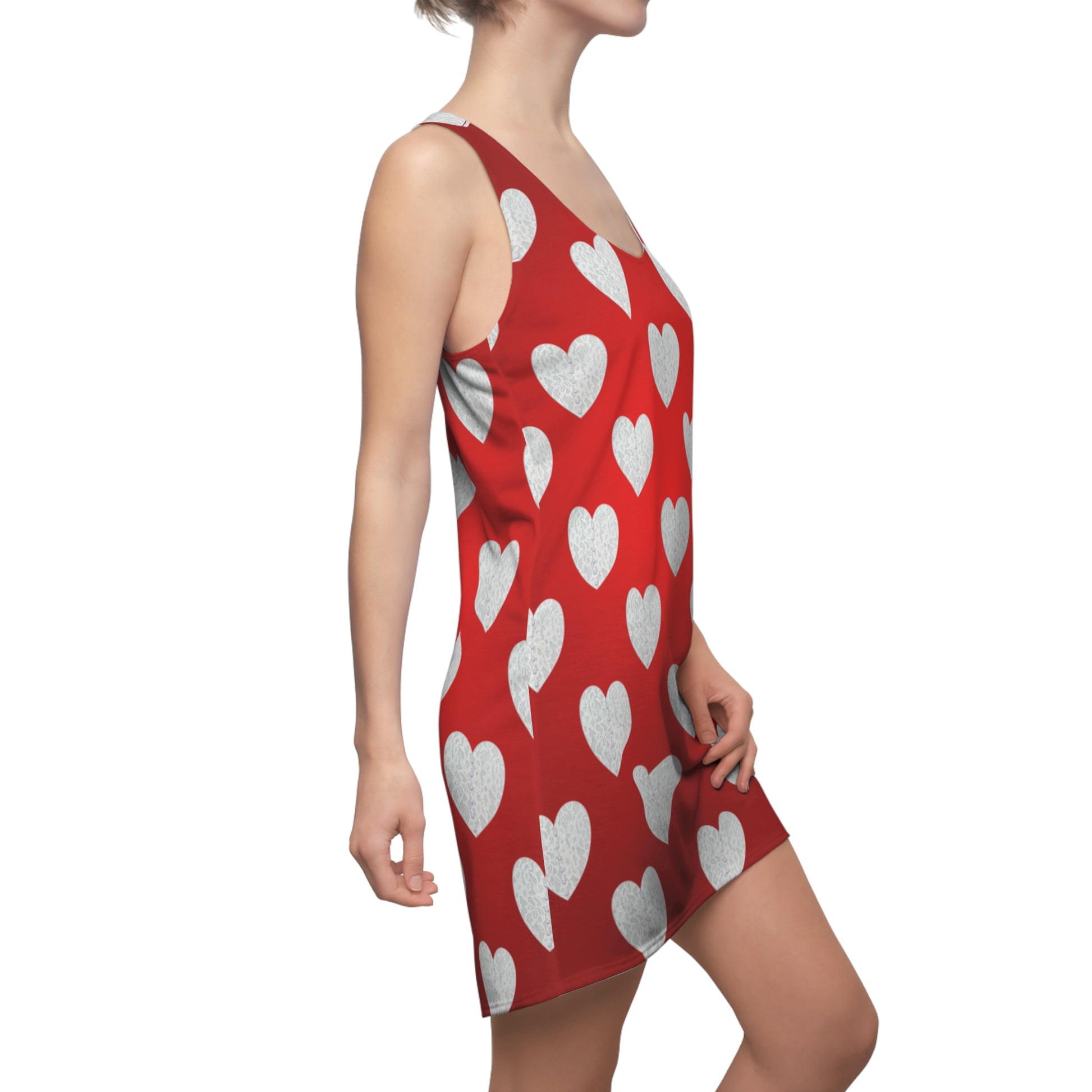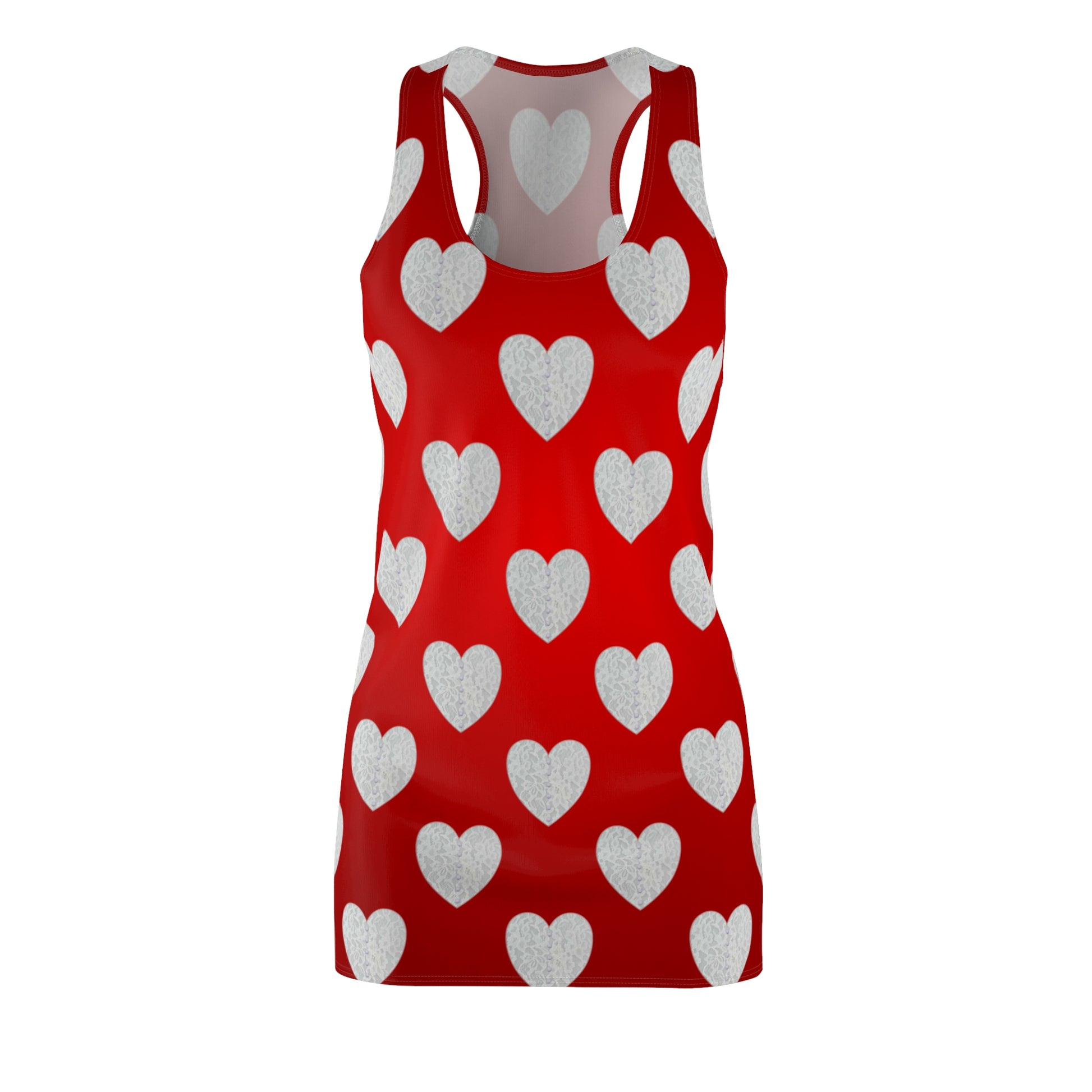 Rotes Racerback Kleid mit Herzmuster & sanftem Farbverlauf
