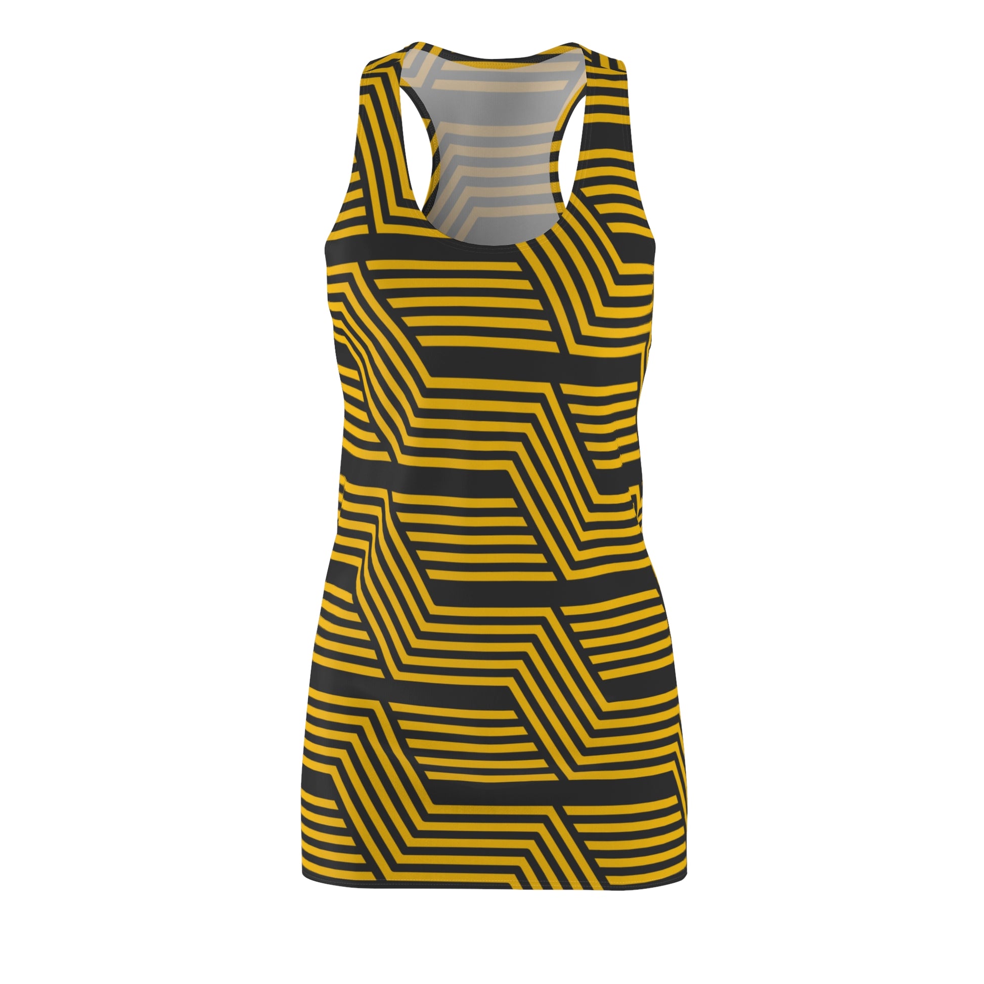 Schwarz Gelb Geometrie Racerback Kleid – Modernes Sommerkleid