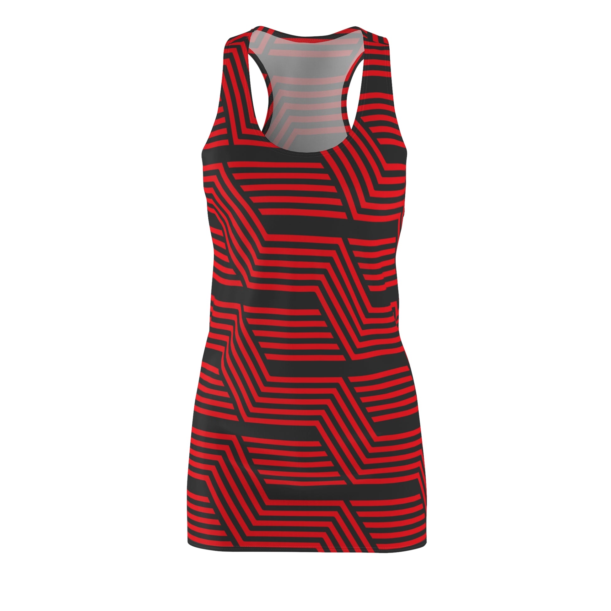 Schwarz Rot Geometrie Racerback Kleid – Modernes Sommerkleid