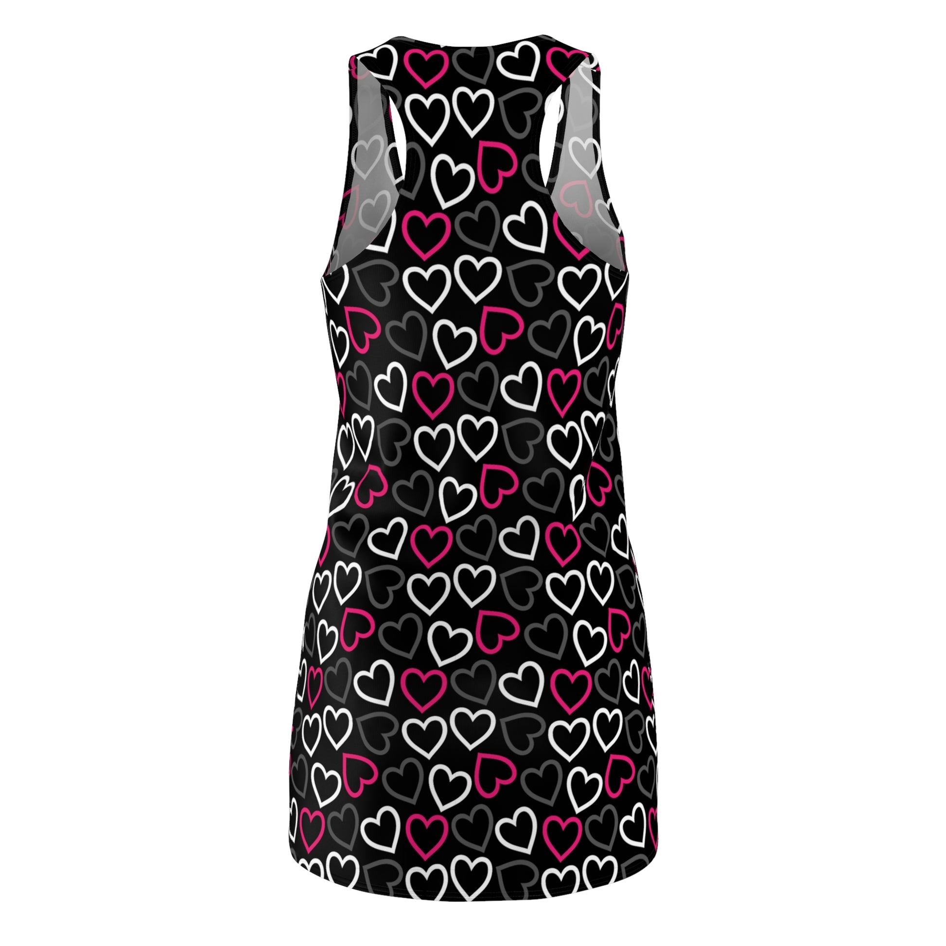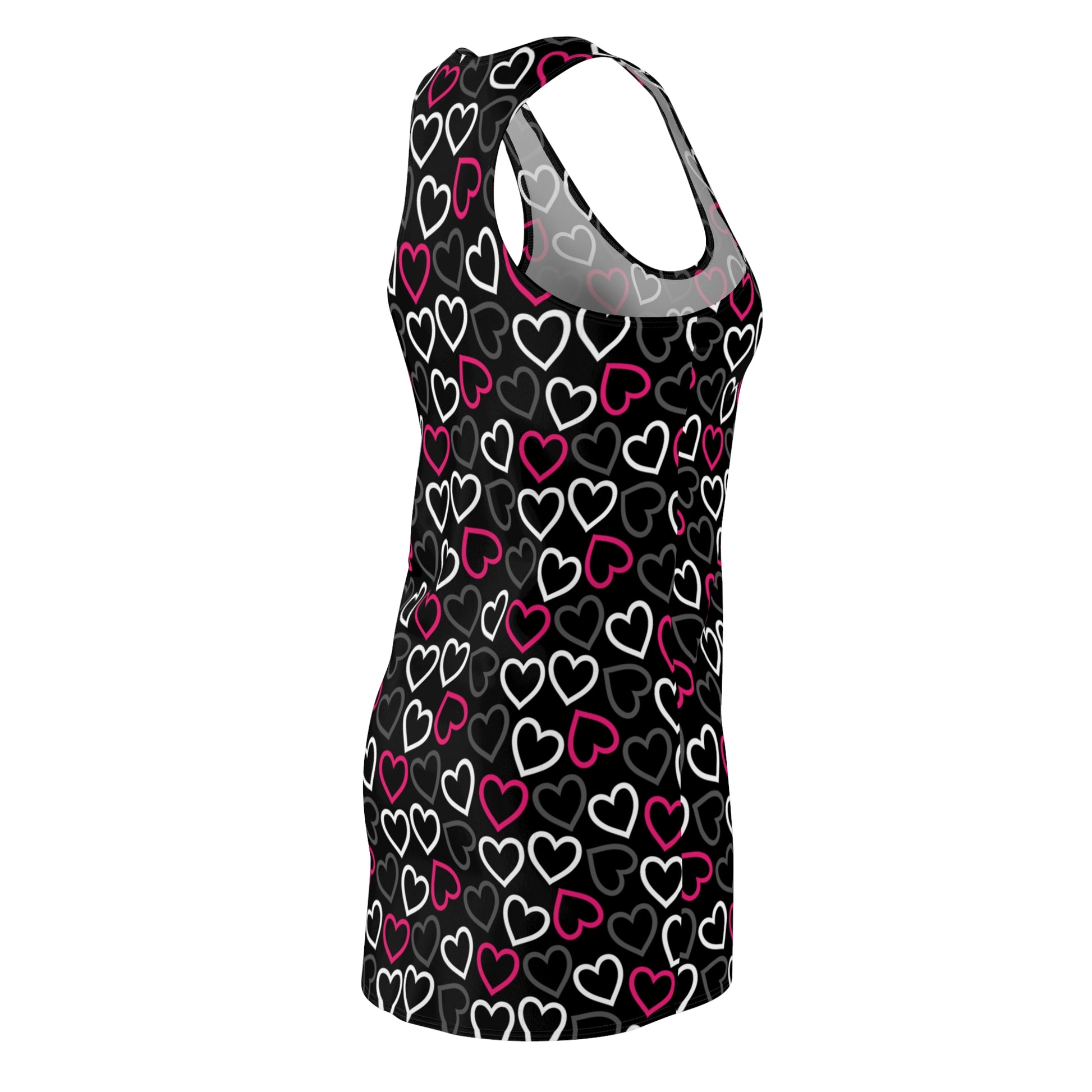 Schwarzes Herzmuster Racerback Kleid – Sommerkleid Damen, Casual Party Outfit, Ärmellos, Trendy Fashion Dress, Geschenkidee für Sie