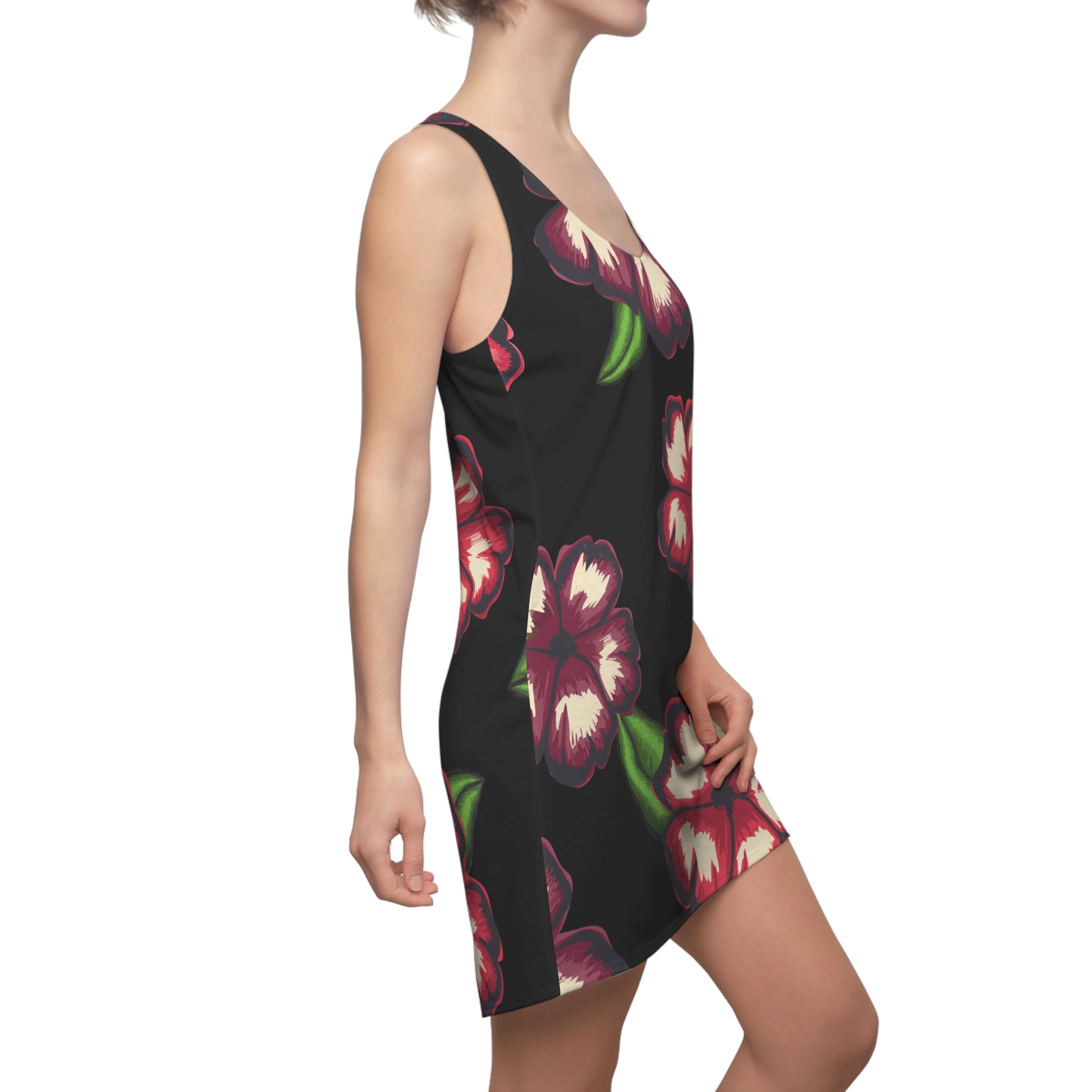 Schwarzes Hibiskus Racerback Kleid – Stylishes Sommerkleid