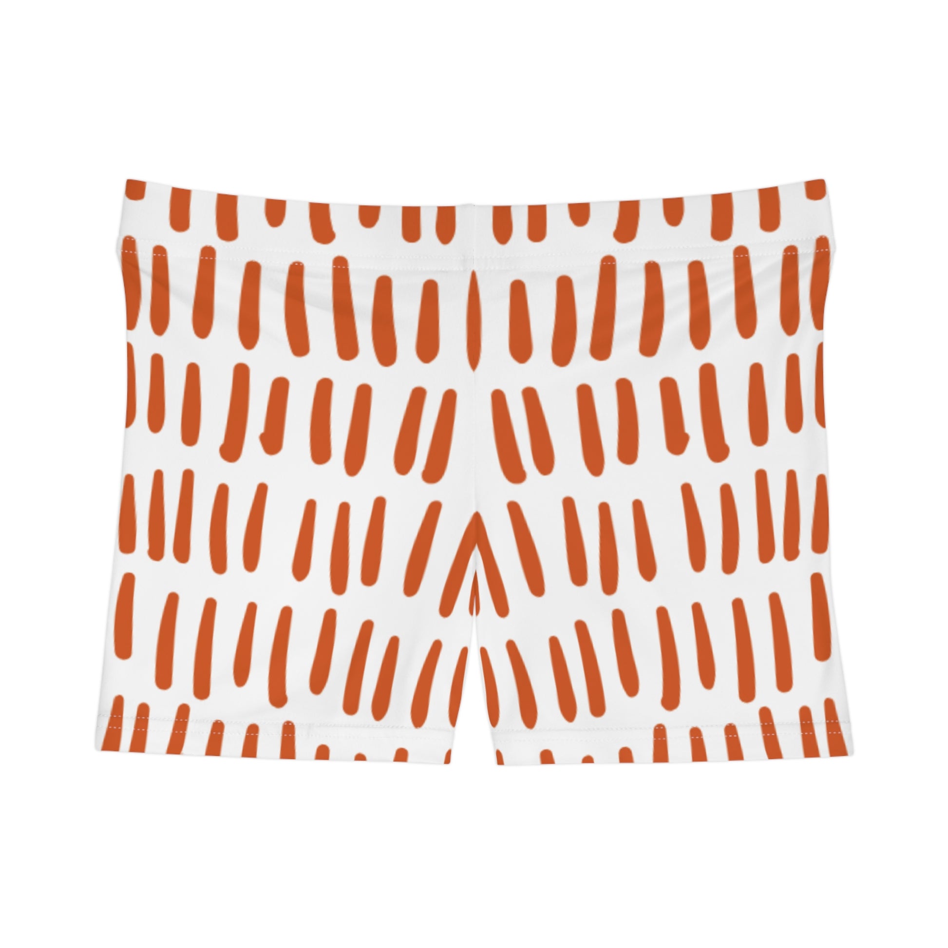 Diese Damen-Shorts vereinen Minimalismus und Style in einem. Das moderne Muster in Rostorange auf weißem Hintergrund verleiht deinem Outfit einen individuellen Touch – perfekt für Sommer, Freizeit und Sport. Ideal für den Sommer, Strand oder den täglichen Gebrauch. Der elastische Stoff bietet Bewegungsfreiheit, die weiche Oberfläche fühlt sich angenehm auf der Haut an.