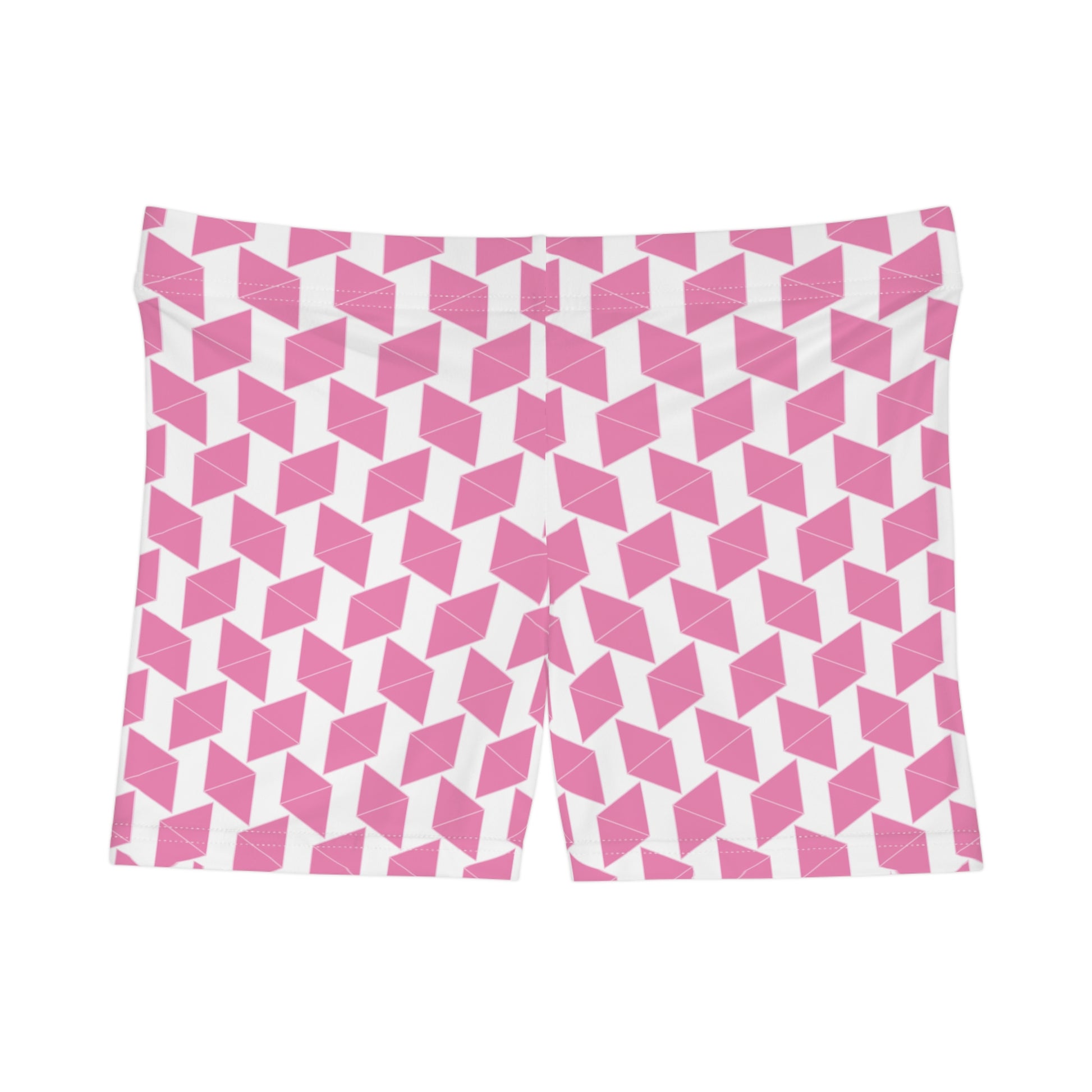 Women’s Shorts Pink Geometric Cube Pattern, Summer Casual