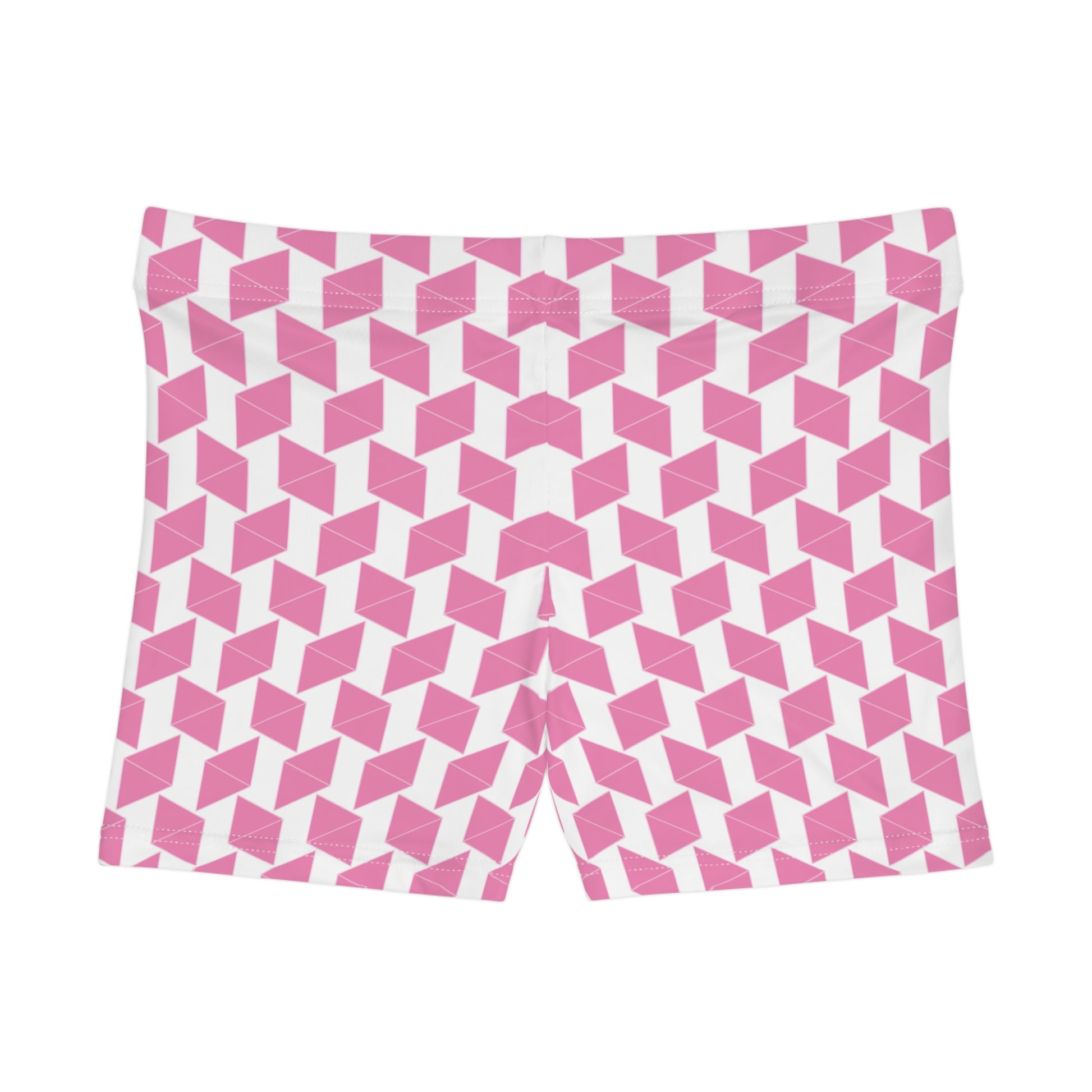 Trendy Women's Shorts – Pink Geometric Cube Pattern, Summer Casual Wear, Beach Outfit, Festival Style