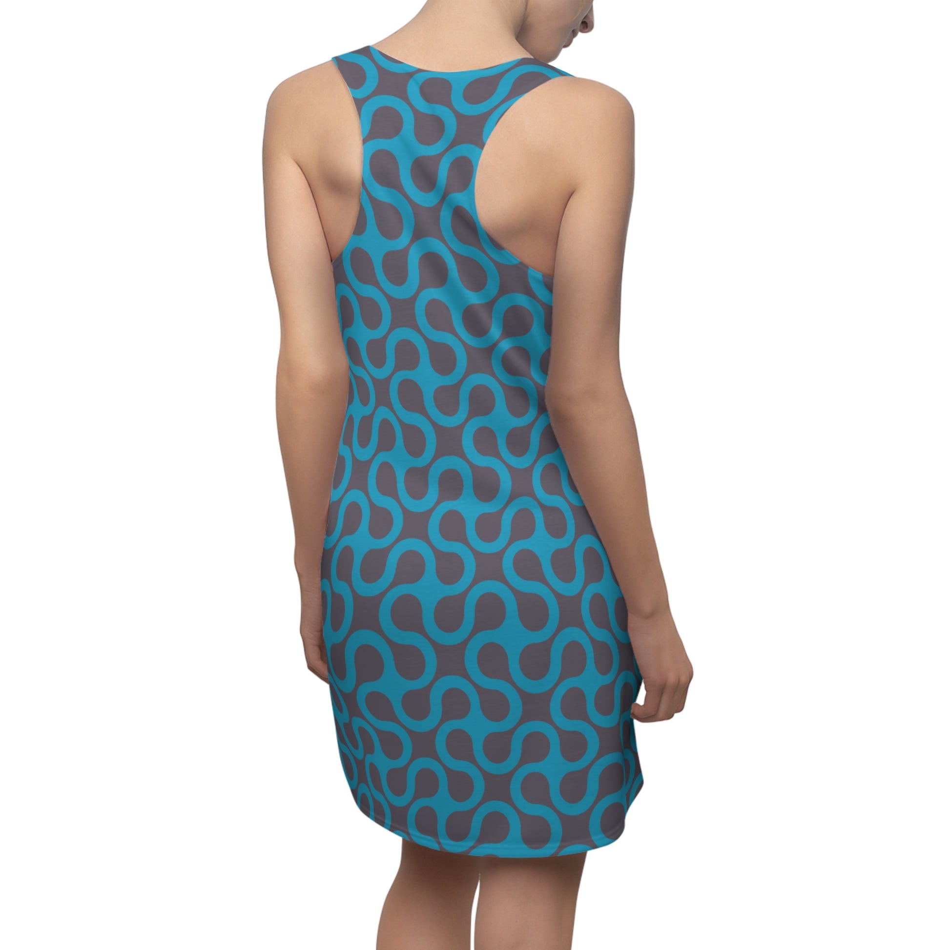 Türkis Damen Kleid Abstrakt Grau Racerback Sommer Casual