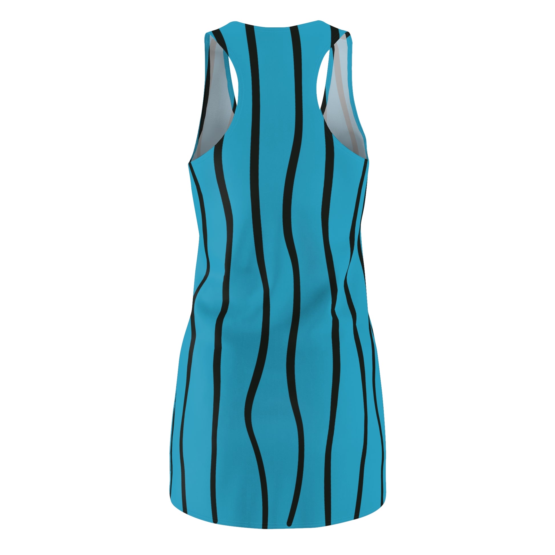 Türkis Schwarz Wellen Racerback Kleid – Modernes Sommerkleid