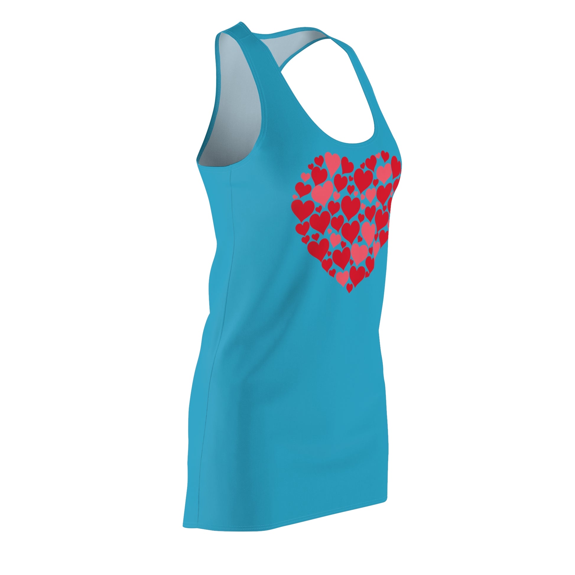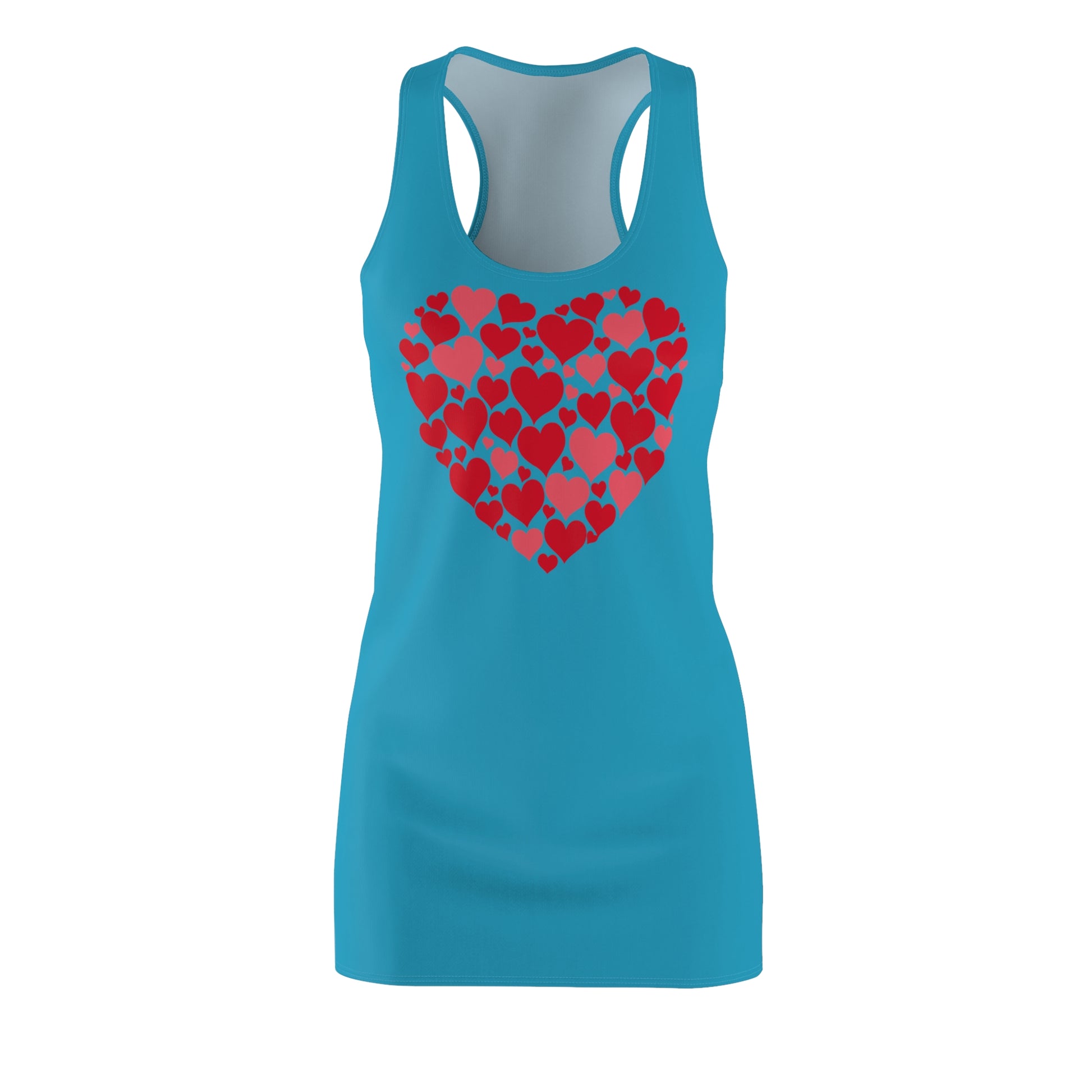 Türkises Damen Kleid Herz Muster Weiss Rot Racerback Casual Party