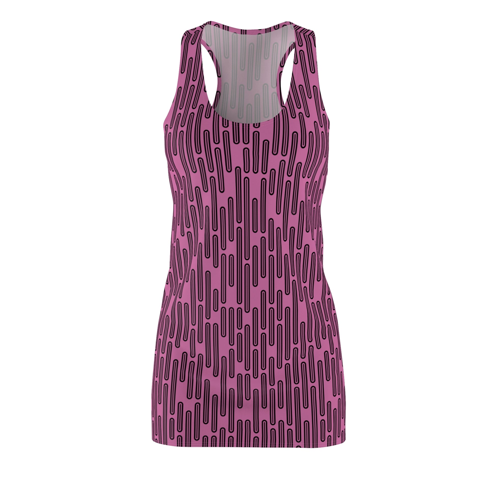 Vertikal Muster Racerback Kleid – Schwarz Hellpink Damenmode