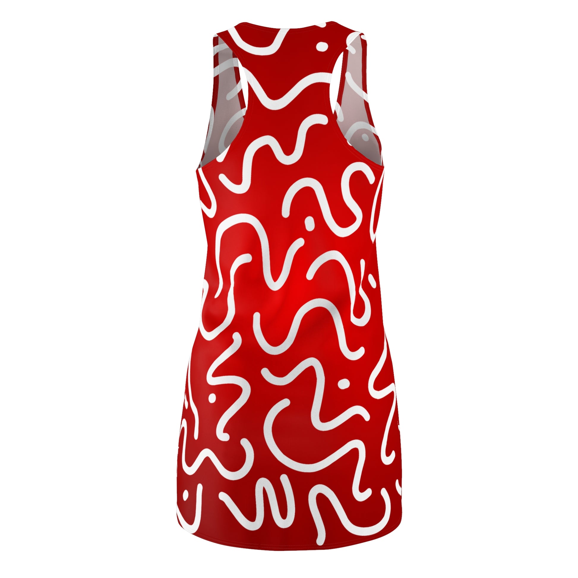 Vibrant Abstract Racerback Dress – Red White Pattern Summer Dress