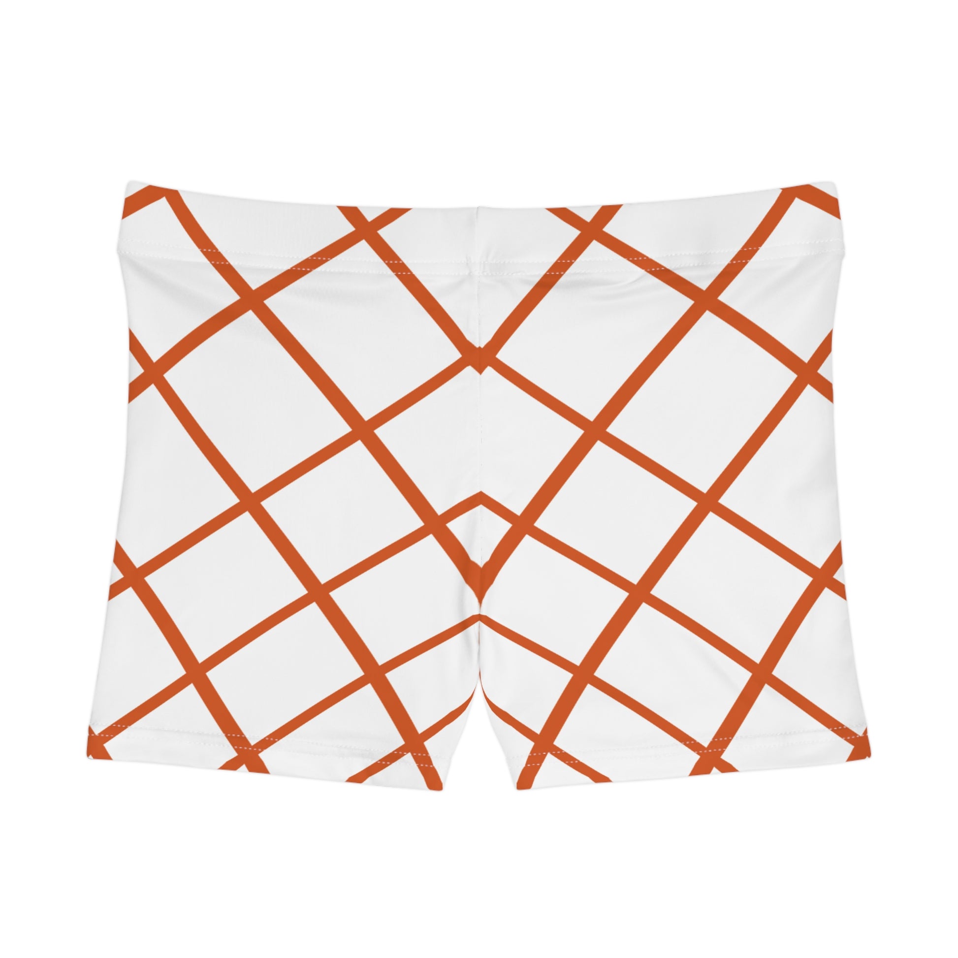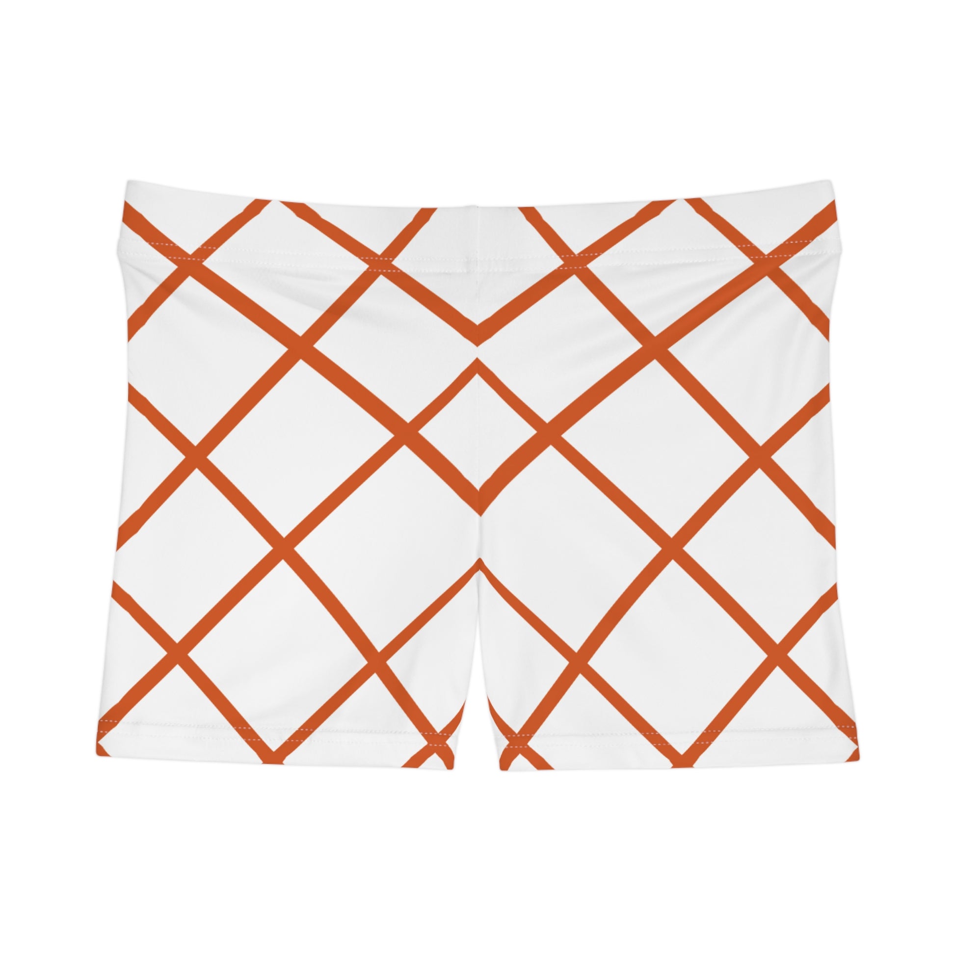 Women’s AOP Shorts – White & Rust Red Grid Pattern, Minimalist Summer Activewear, Stylish Casual Shorts