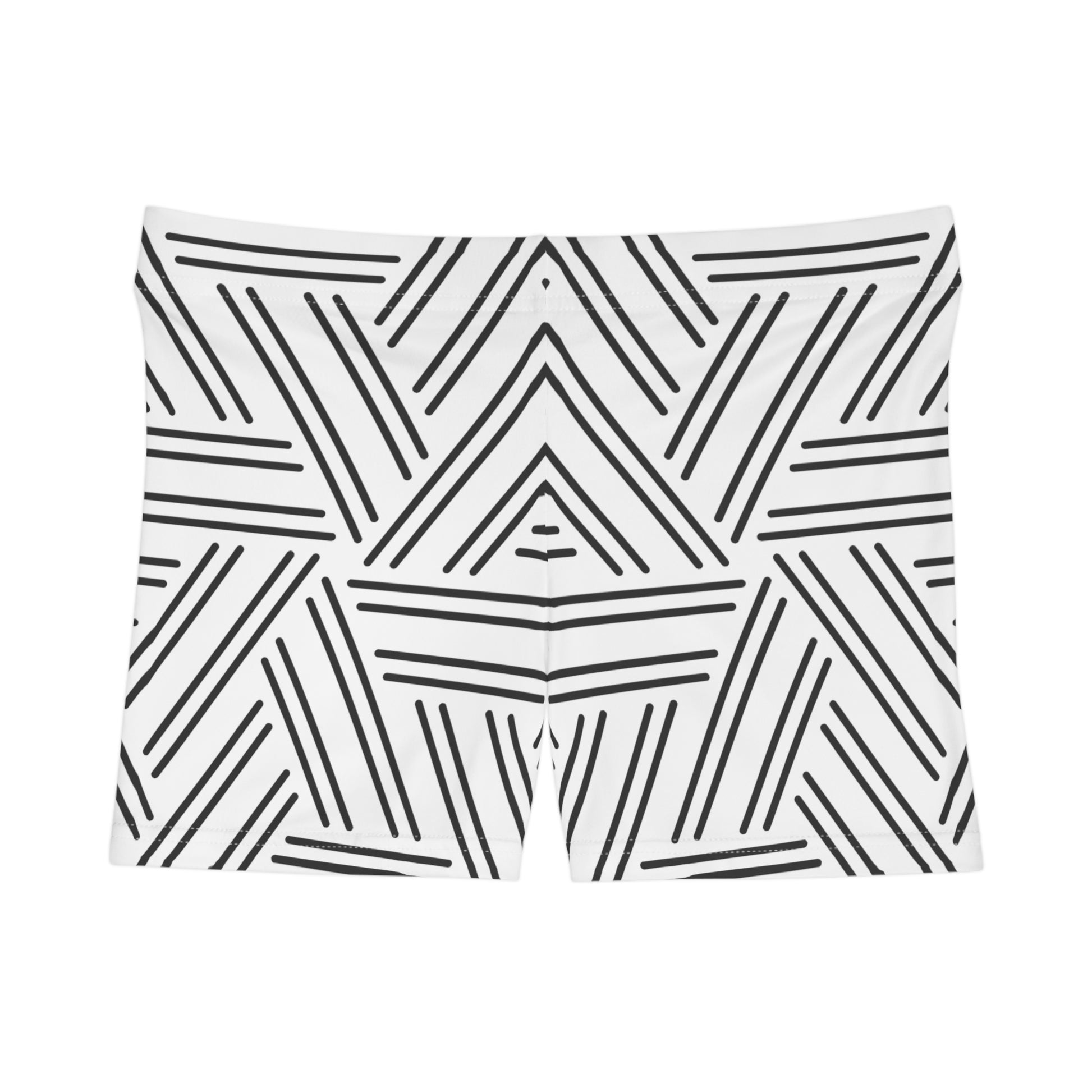 Women’s Shorts – White with Black Geometric Stripe Pattern | Sporty & Stylish